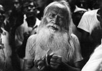 Translated 1976 by Bill Morgan and Pradeep Mukherjea Today is an auspicious day for us. It is Sunday, the 20th of the month of Baishakh, in the Bengali year 1382. We are sitting in the courtyard of Anandamayi, near her feet, and with us are four disciples from America: Premananda, Yogananda, Nityananda, Gyanananda. Today I shall speak a little bit about the meaning of this word "guru," and they will translate this into English. What is the Guru? Once long ago we had a great king, Janak. Janak Maharshi. He made a vow: "He who can give me the knowledge of Brahma in the wink of an eye, he will be my guru." That knowledge of Brahma, which cannot be had even after doing penance for many lifetimes, to get that knowledge edge in the wink of an eye is impossible! Sanak and other sages and rishis, sixty thousand great rishis came and sat, motionless, and whoever would give King Janak the knowledge of Brahma in the wink of an eye would be his guru. They all sat motionless and silent. At that time there was one rishi named Ashtavakra, who was deformed. He came, stooping over, to the guru seat which King Janak had prepared. King Janak asked, "Will you be my guru?" Ashtavakra Rishi said, "Yes, I will be your guru." "You will give me the knowledge of Brahma in the wink of an eye?" "Indeed, I will give you that," said the Rishi. Then King Janak asked him, "So, you will give me initiation?" Ashtavakra Rishi answered, "Yes, I will give you initiation. But first you must give me the guru-fee. Because after I have become your guru, I cannot take any fee from you. Our Vedantic religion, our Hindu Sanatan Dharma, is very strict. There is no getting a guru before giving the teachers fee." Then Ashtavakra Rishi said, "Maharaj, there are three things you must give me for the guru-fee. The first is the body, the second is the mind, the third is your wealth. You have to give me these things first." In the presence of those sixty-thousand rishis King Janak promptly and ungrudgingly gave these gifts. First he gave his body, meaning the physical body. Secondly he gave his mind. And thirdly, he gave all his wealth. By wealth we do not mean gold, pearls, or gems. Our real wealth is our eyes, our ears, our tongue, our nose. Within this body there are great riches. These riches King Janak gave ungrudgingly. After taking the gifts, Ashtavakra Rishi, sitting on the guru seat said, "Tell me now, King Janak, just who will take this knowledge of Brahma? Who will receive this knowledge of God"? Then Janak said, "What? "I!" And again he exclaimed, "I!" Ashtavakra said, "What does I mean? All that you gave me: your body, your mind, your riches, if this is not 'I' then where else is I?" King Janak became very thoughtful. Then Ashtavakra Rishi said, "Maharaj, that knowledge of God, which you are getting in the wink of an eye, we chant everyday, like this: