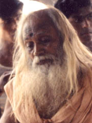 Krishna himself appeared to the heart of the Methor! No doubt the Methor is doing the name of God in a selfish way. But he doesnt stop the name. He doesnt sleep anymore! He doesnt eat anymore! It became known in that land that a certain sanyasi had come to the Ganges bank. He doesnt pay any attention to anything. So many fruits, so much money, whatever is given to him is just lying in a heap. He simply has become absorbed in the Name. Immersed in the Name. The King also went to see him. The Minister of State went too. The King, by his own impulse, said to the Queen, "Queen, you are my wife. Today by the Ganges bank a sanyasi has come, continuously absorbed in repeating Gods name. He doesnt sleep, he doesnt eat. He is all the time absorbed in the Name. Will you go and see him?" "By your command," the Queen said. "If you command," she says, but the Queen is thinking to herself ... there are some impure thoughts in her mind. A screened pathway was made from the Kings house to the side of the Ganges. The Queen will go to see the holy man. That day she dressed herself up doubly beautiful. She spreads the perfume on her body. The Methor is continuously doing the Name, tears streaming from his eyes. The Queen went to him calling: "Oh Methor, Oh Methor! I have dressed you up as a holy man for my sake. Now I have come. Now you can enjoy me as you like. Oh Methor! Oh Methor!" But is the Methor the same Methor anymore? When the Queen saw that he gave no response she shook him: "Methor! Oh Methor! She for whose sake you dressed up as a sadhu and took up Hare Krishna name, I have come! Now enjoy me!" All of a sudden the Methor turned into black stone! Seeing this, the Queen began to cry. "What is this? What has happened? What terrible destruction have I wrought?" Then there was a voice from heaven. "Queen! Oh Queen Mother! Because of your command this lowly toilet sweeper, taking up the Divine Name, has gone beyond this world and attained salvation." We all crave a little bit of wealth. If I am very poor and I get two rupees, then what do I lack? But if someone who has a thousand rupees gets a hundred, he says, "Whats this?" And if someone who has a hundred thousand rupees gets a thousand, to him that is nothing. "By following your orders, this toilet sweeper, taking up the Name, (Sanskrit verses here ...) Having the vision of God, this toilet sweeper has attained liberation. His body has turned into black stone. On this black stone make an image of Krishna. Establish here his temple and do his worship. You will also attain to liberation." Then the Queen began to cry. Tears started flowing and she said, (Hindi verses here...). Tulsidas has said this. Sat Sanga. This ritual of taking a mantra is for making the mind still. Everything is within the mind. Sri Sri Venerable Prem Kalpataru Ramakrishna, after telling this story to the devotees, went into samadhi. The devotees went to him and saying Hare Krishna Name in his ear, broke his samadhi. Today I told this story of Ramakrishnas. I think maybe everyone knows it. My devotees, Premananda, Yogananda, Nityananda, this boy Nityananda is very young. He is very anxious to see God. This is not a worldly thing. Is it something you can buy in the market place and give it out? For that reason he has taken a vow of silence and is sitting there. His purpose is to see God. If he has complete faith, of course he will see God. "You can find Gurus by the thousand, But a real disciple is rare." There is only one disciple. Thakur Ramakrishna has said this. If he had not gotten Naren, that Naren who was a part of Siva, whose name was Vivekananda, who enmaddened the whole world, who aroused everyones fervor ... Now, today, bowing to Sri Sri Ramakrishna, Venerable Devata, I end my speech here. Om Shanti, Om Shanti, Om Shanti. |