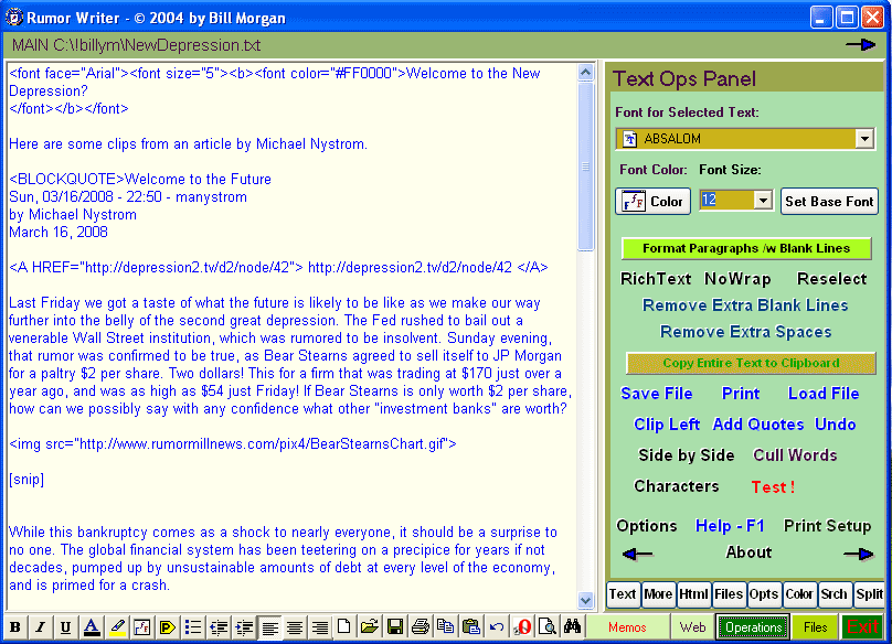 The program also has the ability to use RTF (rich text